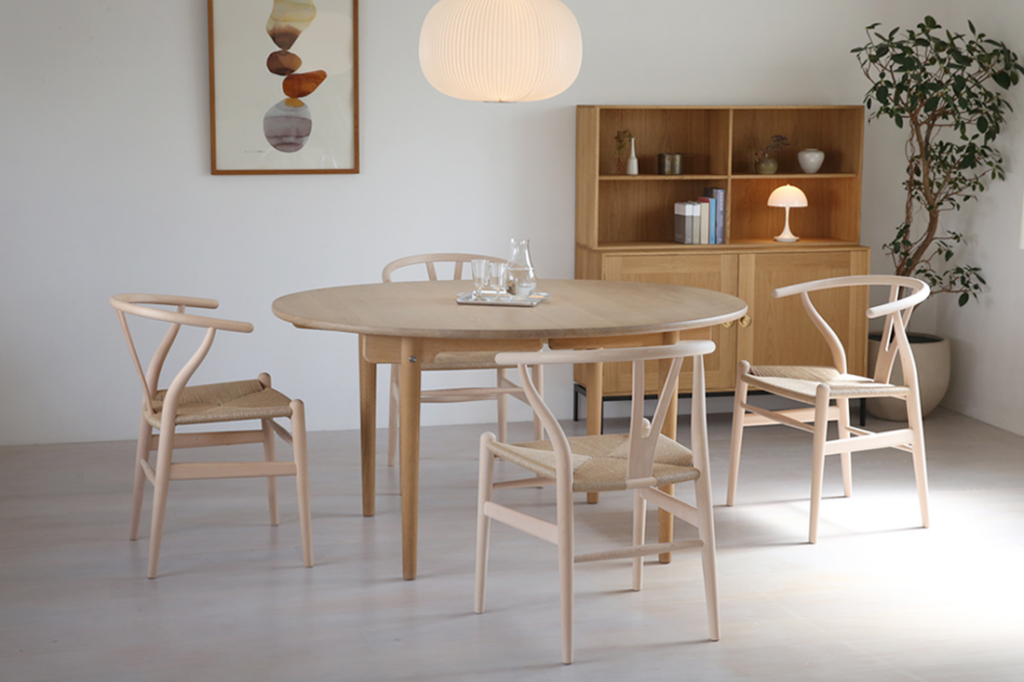 Yチェア(CH24)は、北欧デザインを代表するダイニングチェアの名作です。1950年にデンマークで発表されて以来、70年以上にわたって世界中で愛されています。